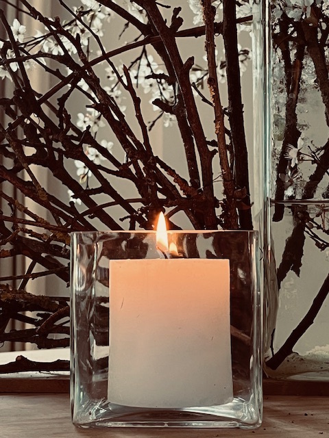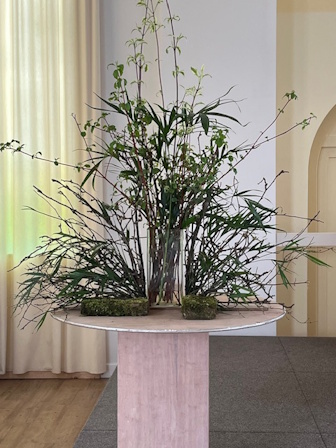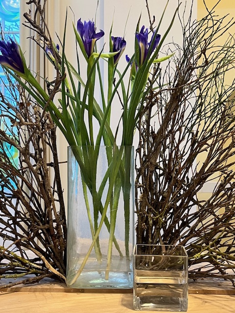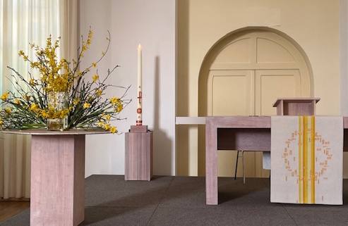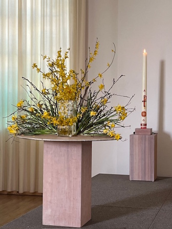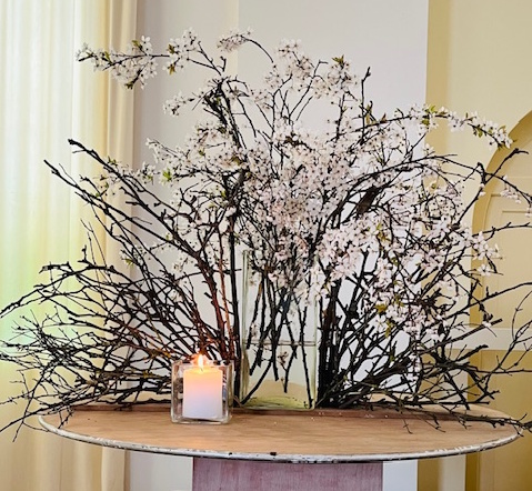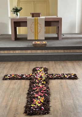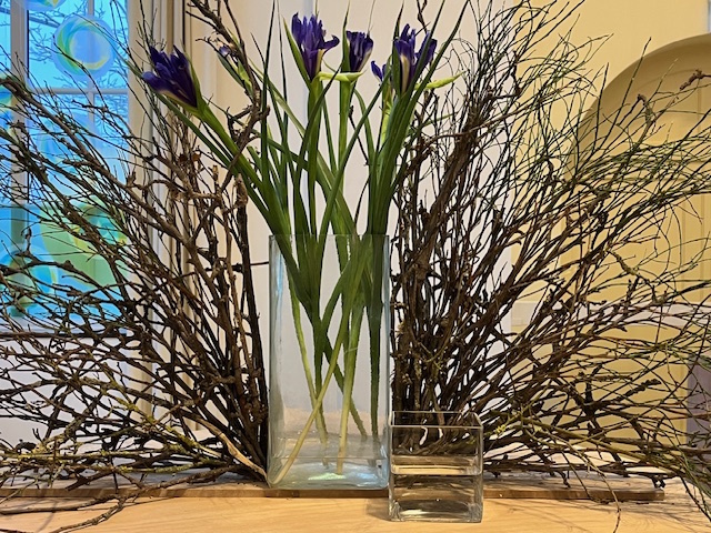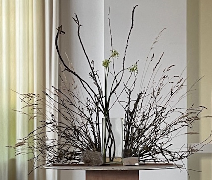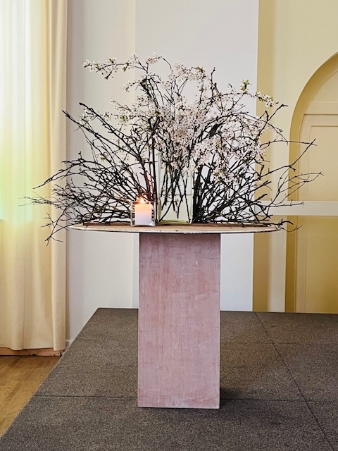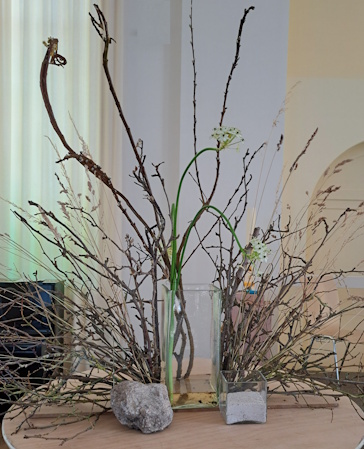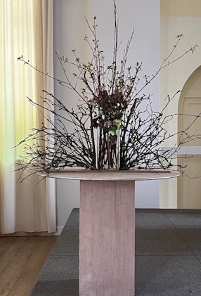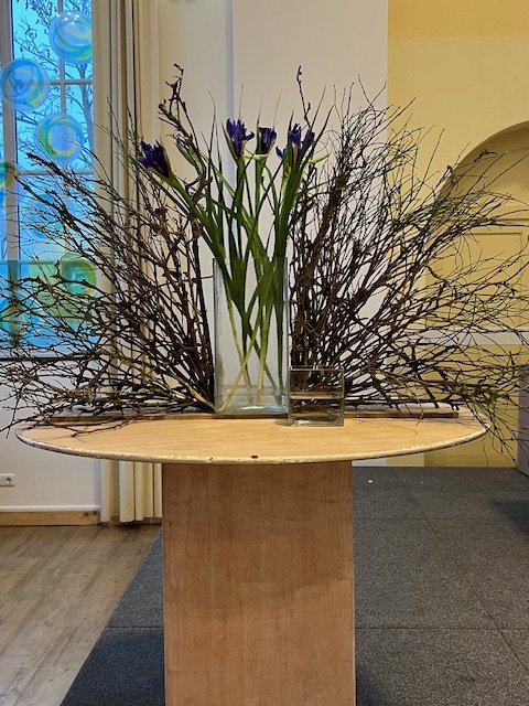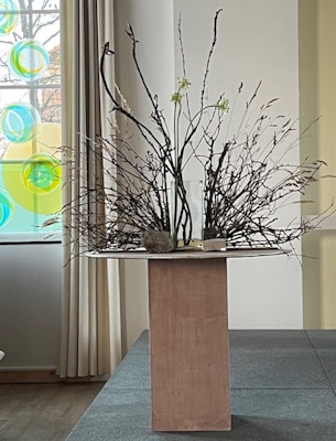 In de 40dagentijd en met Pasen maakt Jeannet Slob symbolische schikkingen bij de diensten.