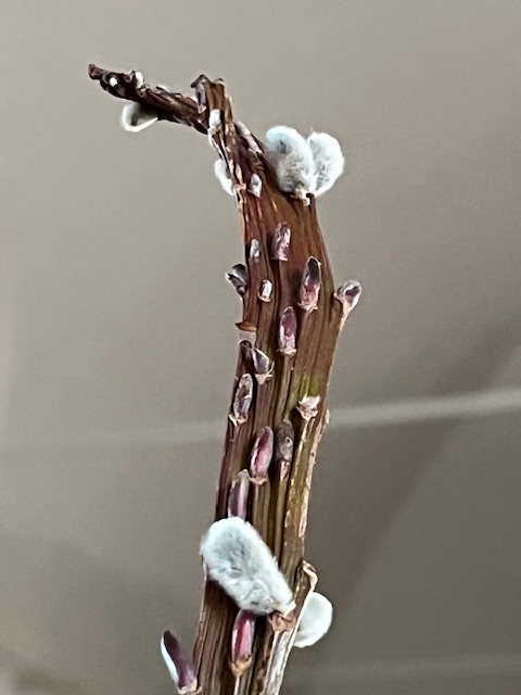 Naast de bloemen drie takken van de bandwilg. Deze wordt geassocieerd met groeien en vertrouwen.