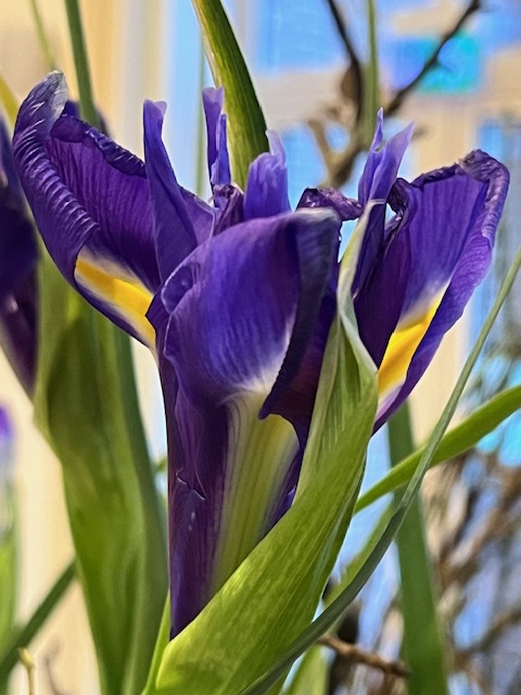 Water, levensbron, de iris, een teken voor de drie-eenheid, hemelsblauw, goddelijk geel en zuiver wit. De iris kleurt onze ogen waardoor we kunnen zien naar de ander.