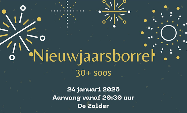 Nieuwjaarsborrel Soos 30+! Zaterdagavond 24 januari - 20.00 - 00.00u